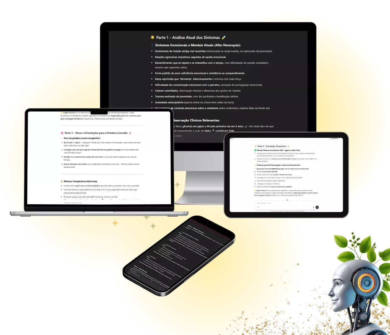Com um simples Ctrl C + Ctrl V, o Asclépio analisa os sintomas — físicos, mentais e emocionais — à luz da homeopatia clássica.