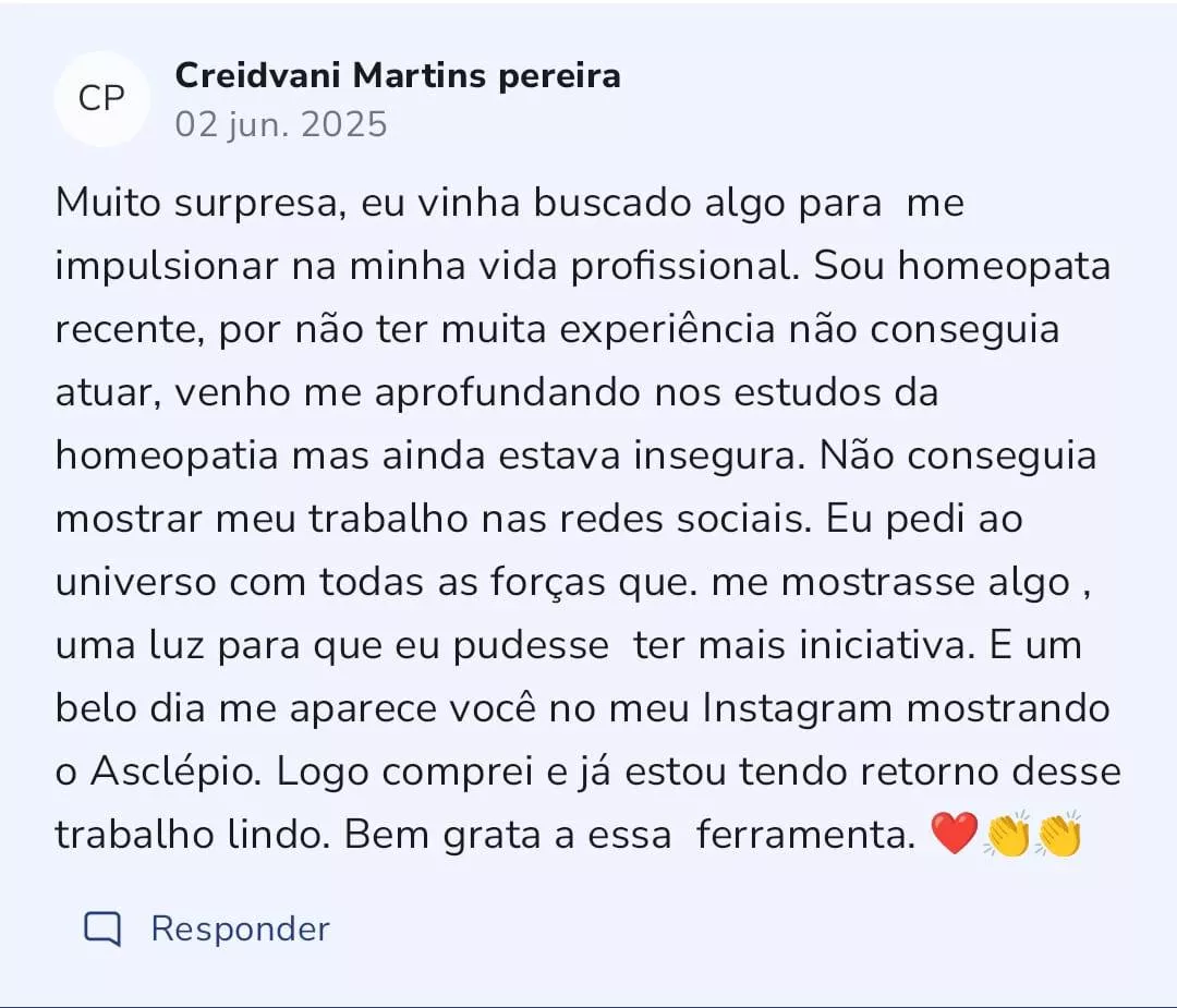 O Asclépio te mostra o raciocínio homeopático na prática com profundidade, clareza e segurança, mesmo que você ainda se sinta insegura ao repertorizar