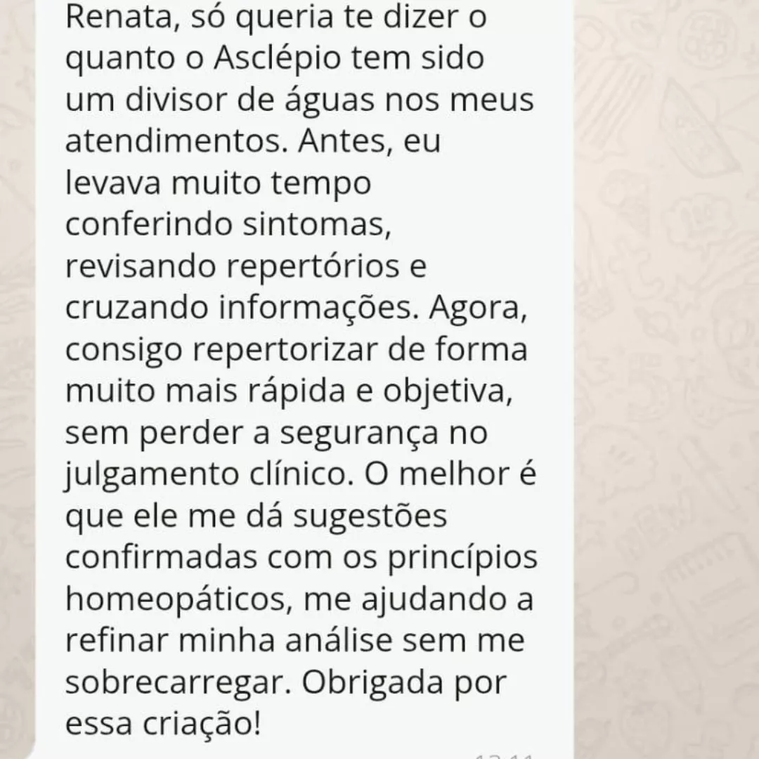 Depois de milhares de atendimentos, percebi que a prática homeopática pode ser tão profunda quanto trabalhosa. Foi aí que nasceu o Asclépio: um robô treinado com minha vivência clínica, minha sensibilidade humana e os fundamentos da homeopatia clássica.