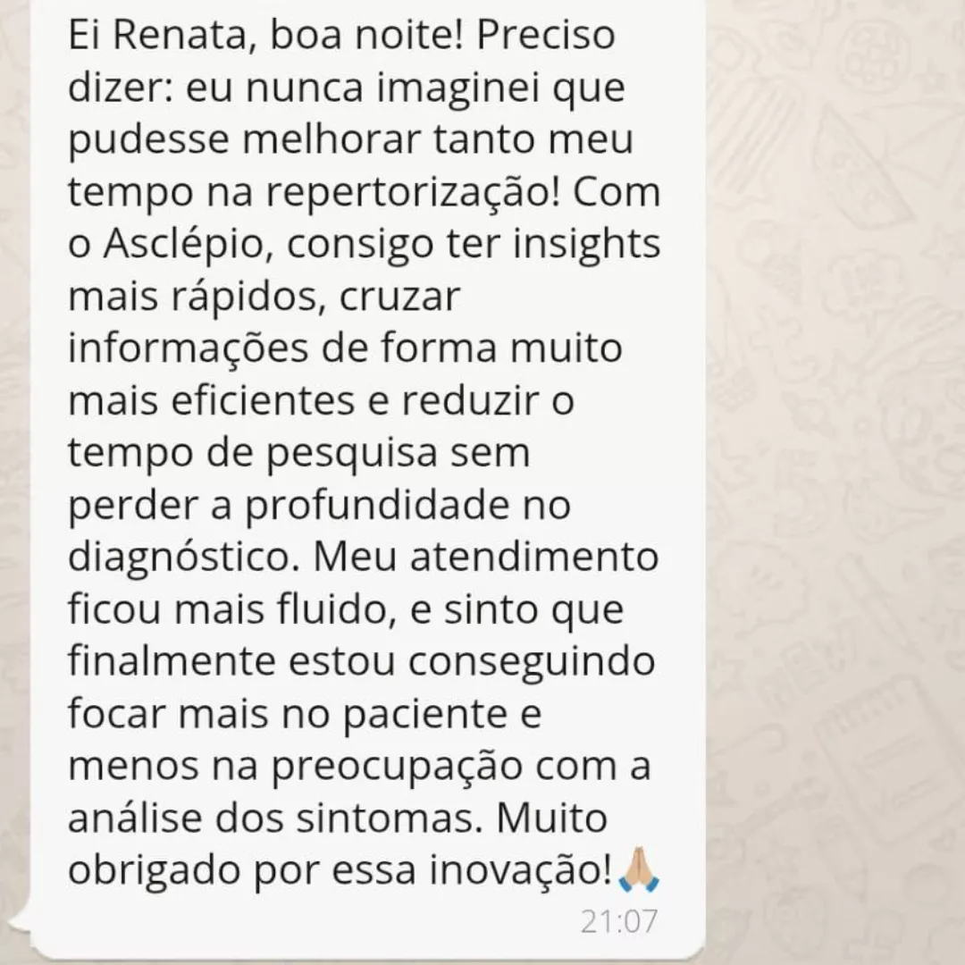Ele vai além disso! O Asclépio é um assistente inteligente que utiliza repertorização baseada na homeopatia clássica, mas também inclui uma visão contemporânea, integrando diferentes abordagens. Isso torna suas análises completas e muito mais eficazes.